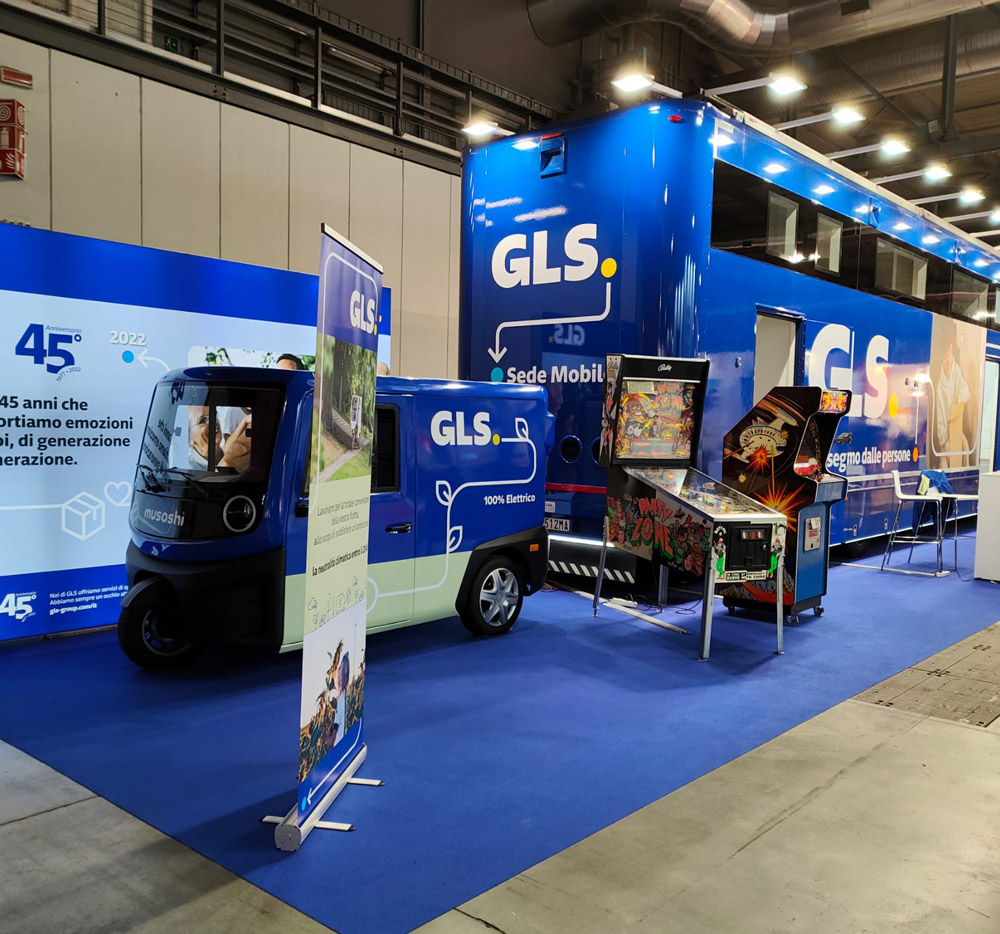 Anche noi di GLS eravamo presenti con un nostro stand, allestito con la Sede Operativa Mobile, il Musoshi e due videogiochi vintage. Perché i videogiochi? Perché quest’anno GLS festeggia i 45 anni e niente rappresenta meglio la fine degli anni ’70 dei videogiochi Arcade.