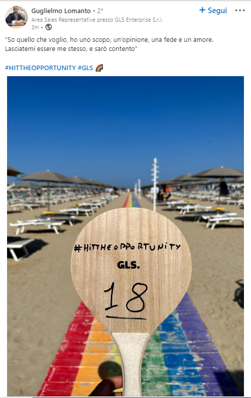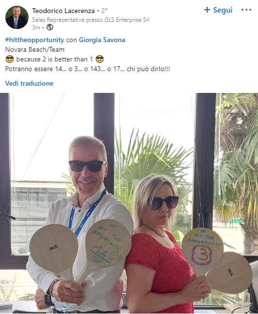 Il fulcro di questo contest è stato rappresentato dai racchettoni da spiaggia GLS, divertenti strumenti utilizzati dai partecipanti per mettere in mostra le proprie abilità nell’acquisizione di nuovi clienti attraverso i social media.