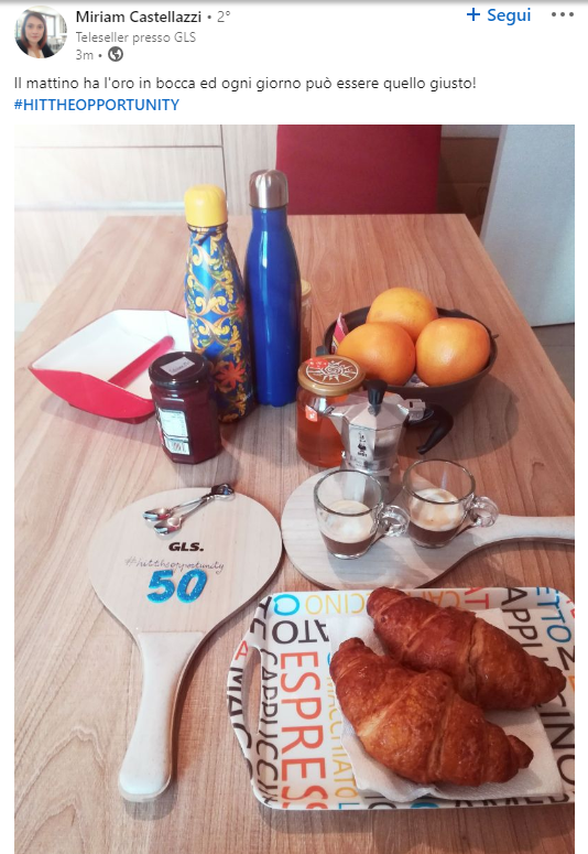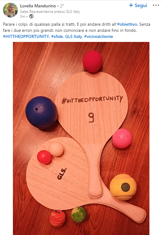 Ogni membro del team sales ha ricevuto uno di questi gadget durante l’estate e ha accettato la sfida di creare foto uniche e suggestive da condividere su LinkedIn. La chiave del gioco era l’utilizzo dell’hashtag #HITTHEOPPORTUNITY e di un numero magico, rappresentante i lead che si prevedeva di acquisire. La creatività, accompagnata da una frase d’impatto, è stata la chiave del successo.